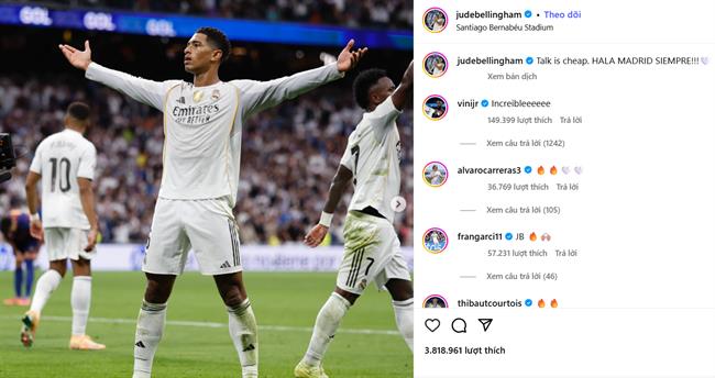 Vài giờ sau trận đấu, Jude Bellingham đã đăng loạt ảnh trên Instagram kèm dòng chú thích ngắn gọn nhưng đầy tính khiêu khích: “Nói thì dễ. HALA MADRID SIEMPRE!!!”, đây là một thông điệp rõ ràng nhằm “đá xoáy” Yamal. Trong trận đấu, tiền vệ người Anh tỏa sáng khi kiến tạo cho Kylian Mbappe mở tỷ số và tự mình ấn định chiến thắng cho Real Madrid.
