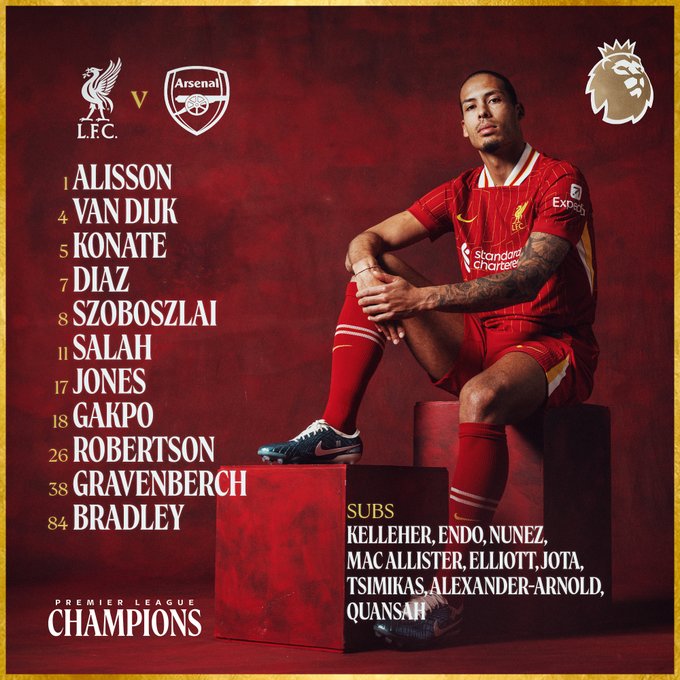Về phần Liverpool, HLV Arne Slot tung ra sân đội hình mạnh hơn so với trận thua Chelsea với những hảo thủ hàng đầu như Van Dijk, Konate, Robertson, Gravenberch, Szoboszlai và dĩ nhiên không thể thiếu Salah. Tuy nhiên Arnold, hậu vệ đã chính thức tuyên bố ra đi sau khi hết hạn hợp đồng với Liverpool cuối mùa này, chỉ ngồi dự bị.