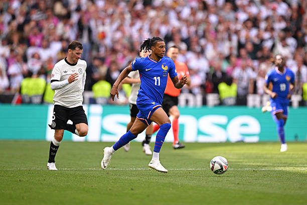 Phút 38, Đức phối hợp như “dạo chơi” trong vòng vây hàng thủ Pháp, trước khi Wirtz dứt điểm chéo góc khiến thủ môn Maignan đứng chôn chân nhưng cột dọc đã cứu thua cho Pháp. Sau đó, Maignan đã có thể ra tay từ chối pha dứt điểm cận thành của Woltemade.